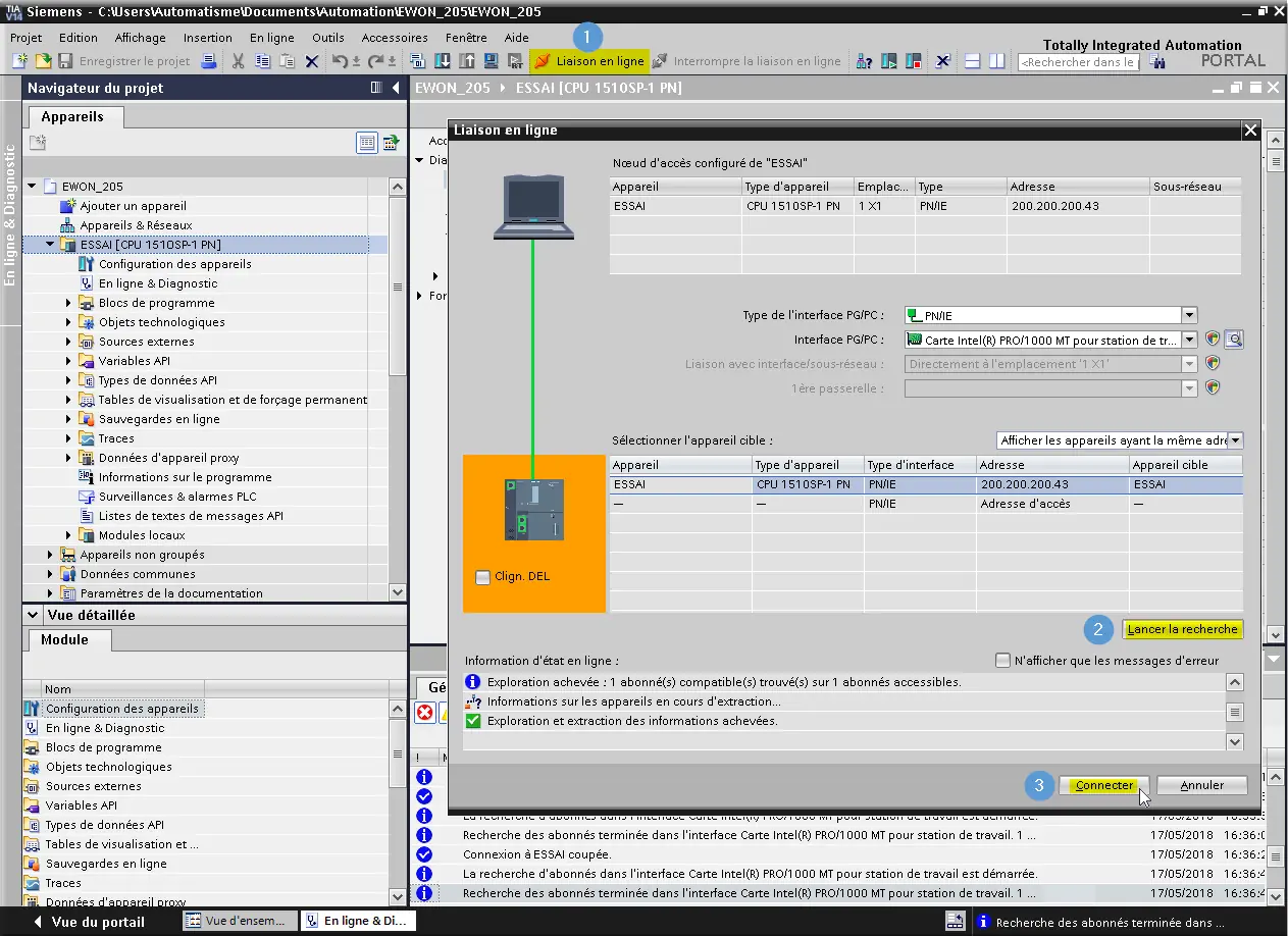 - Il est possible de récupérer le projet dans l’automate : réussi seulement après 3 tentatives ;